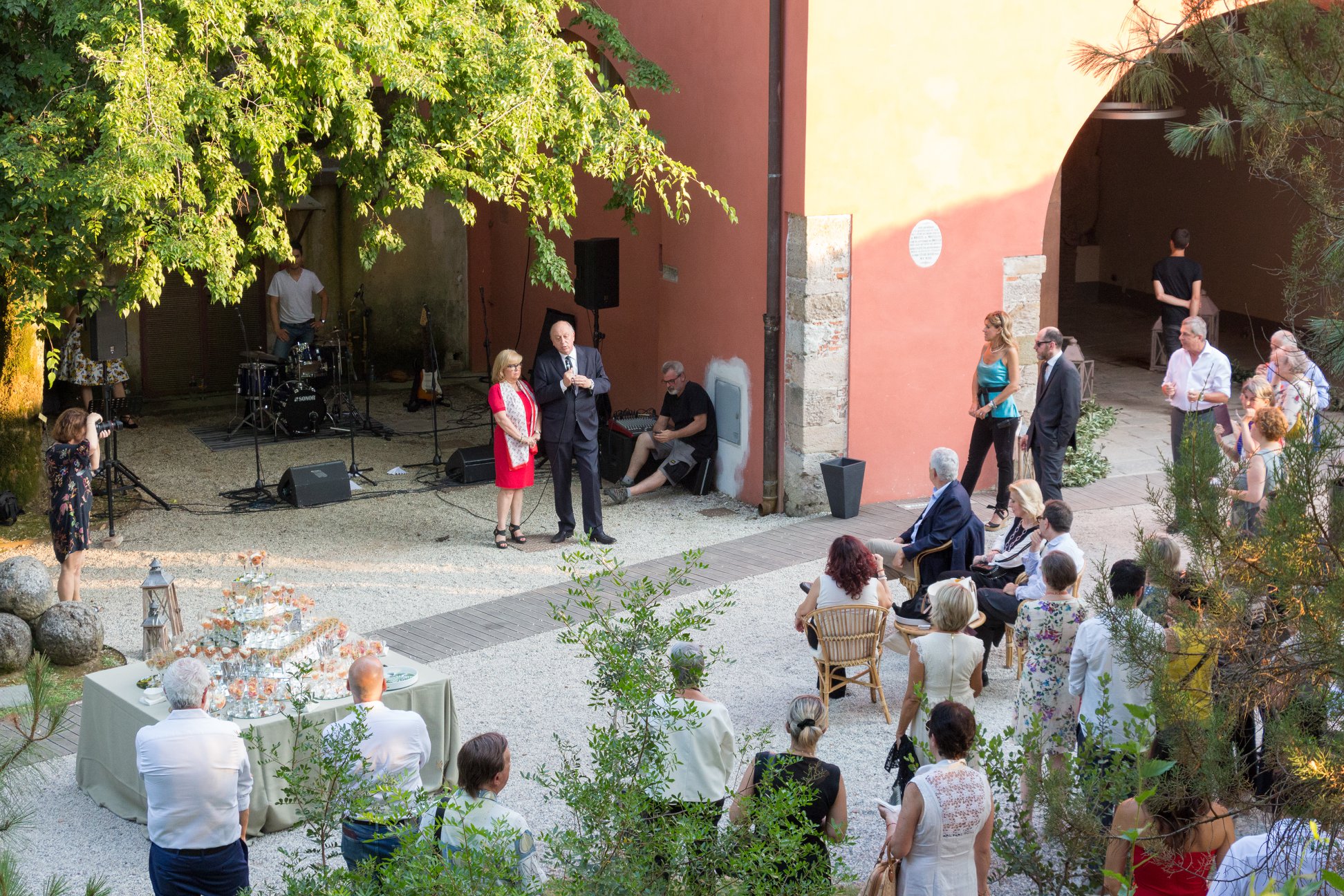 Adesso quello che ci vuole è un aperitivo all’italiana! Il chiostro iniziale del Real Collegio è stato allestito per questo momento di apertura, con in sottofondo un duo dal vivo jazz.