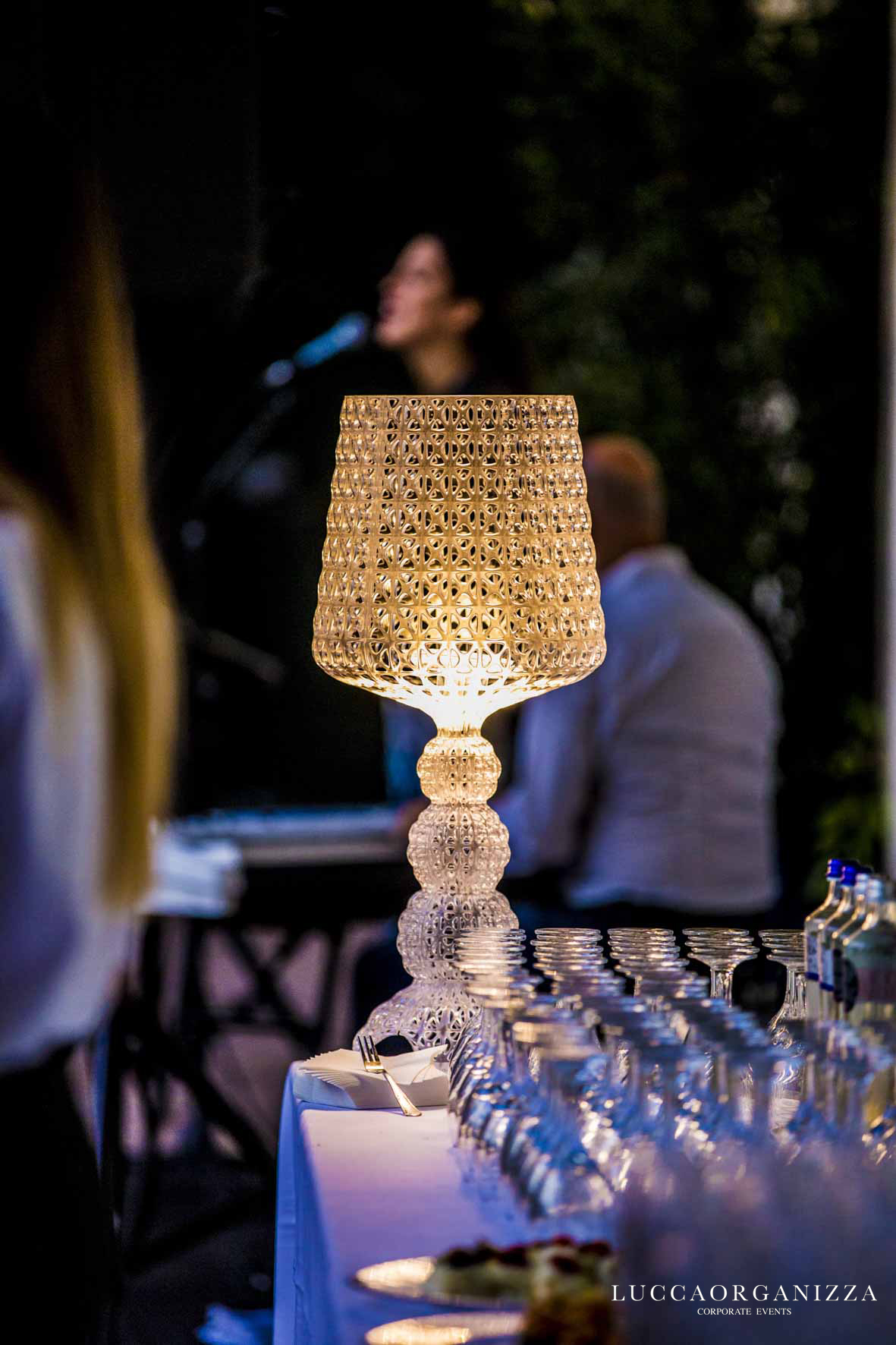 La Cena di Gala è stata allestita nel baluardo che ha ingresso proprio dall’Orto Botanico di Lucca: location suggestiva, segreta e non convenzionale che grazie ai giochi di luce creati dal nostro service ha lasciato tutti senza parole.